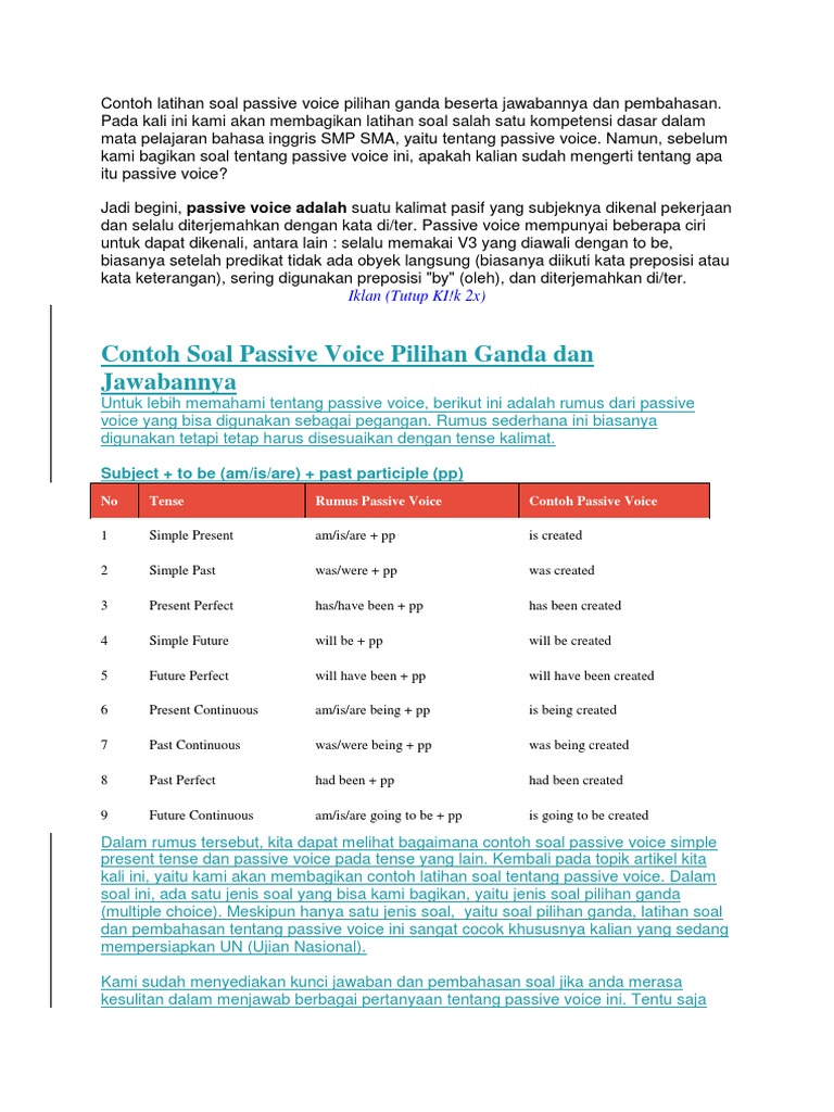 Contoh soal passive voice pilihan ganda dan jawabannya.